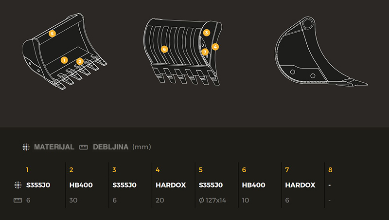 Korpe od vrhunskih HARDOX, WELDOX materijala opremljene najkvalitetnijim habajućim elementima ESCO.
