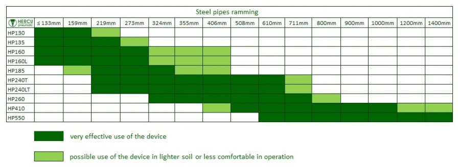 Preporučeno korištenje- pobijanje čelićnih cijevi Ø[mm]- 219-324